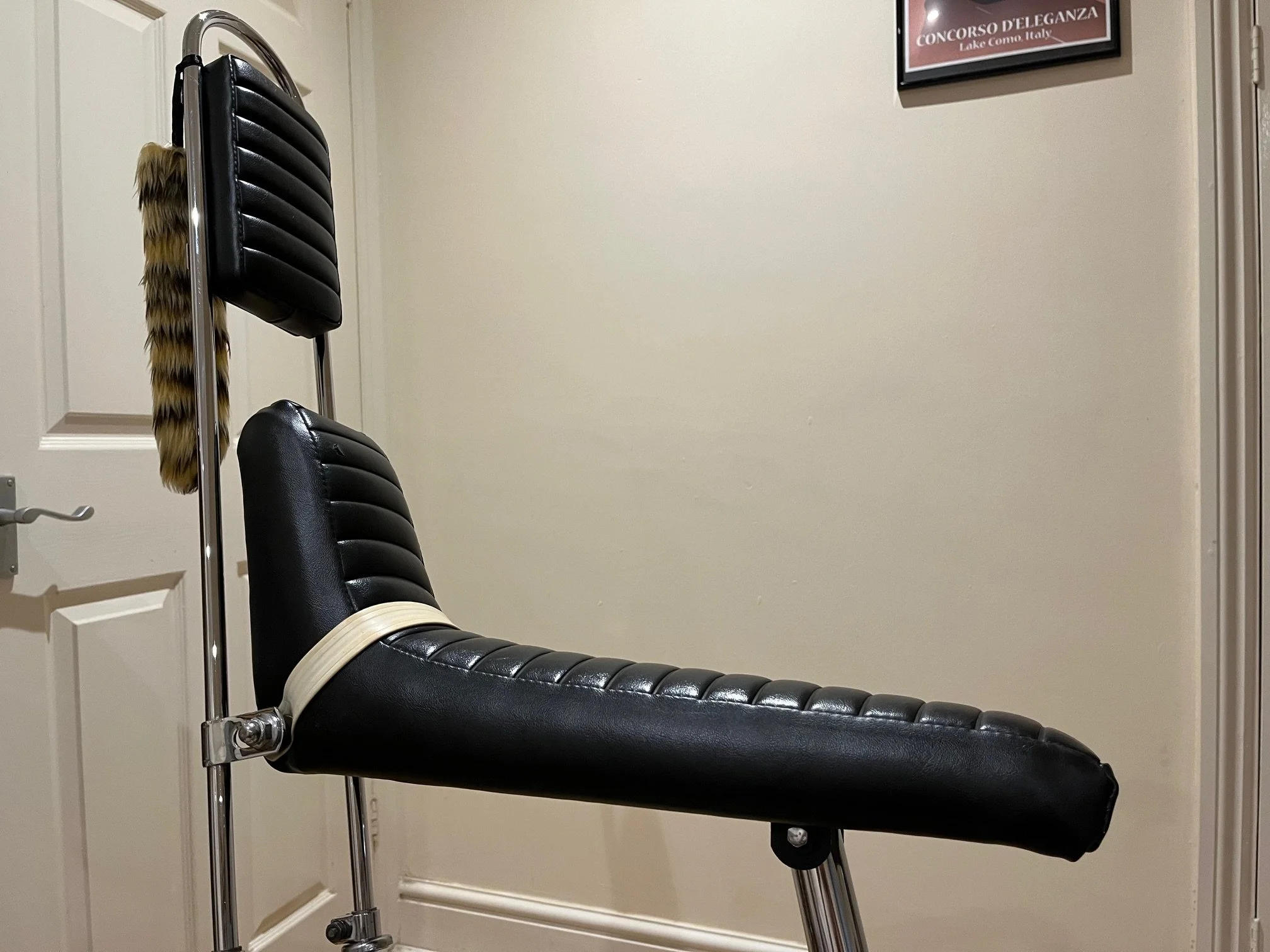 This colour (Targa Mustard) was the lighter of oranges used on Choppers in the 70s and was only produced for 1 year. 1971-1972. That includes the factory HBR (high back rest), short reflector pedals and Mk2 handlebar grips, to name a few differences to a 1970 Mk1. The paint on this example is so original and fantastic condition. Some parts have been re-chromed, however not over-chromed and still retains 75% of its original chrome. It even has original tyres. This bike came from a really loving and enthusiastic home. By far, one of the best riding Choppers I have owned and it will see many more miles in the future.