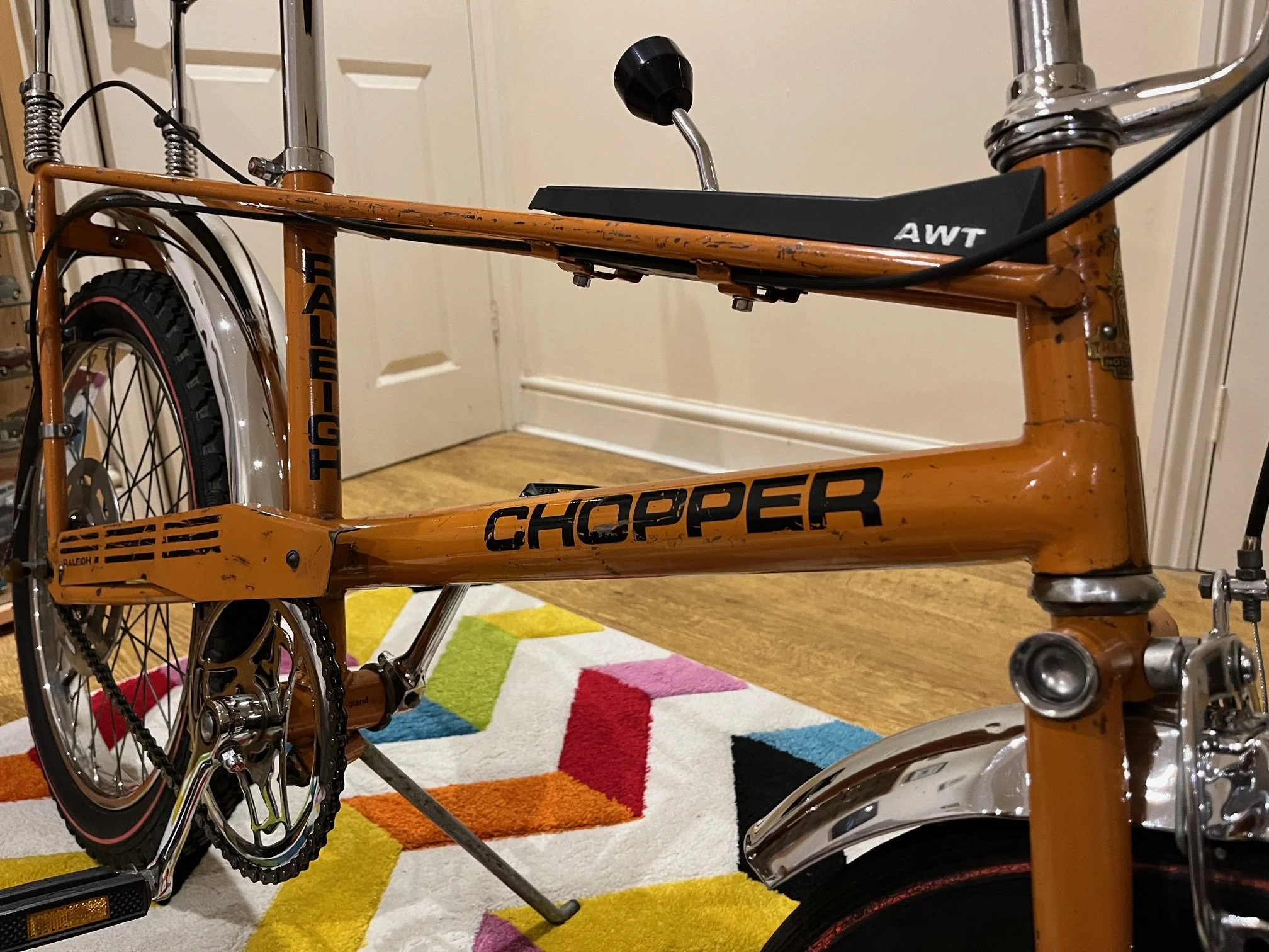 Here is my favourite Raleigh Chopper. That is a bold statement. There were 50+ colours and variants of the Raleigh Chopper produced, however my favourite is to the left. The ultra rare, Targa Mustard 1971 bike. I purchased this highly original example recently (September 2025) from The Retro Raleigh Show at Emberton Country Park. For a little bit of context, I was searching for one of these for the last six years. It was the first bike that I wanted, but was never able to find an original example. After 2 years of searching for an original Mk1, I came across my Golden Yellow bike. Finally I have the Targa and they both sit really nice next to each other.