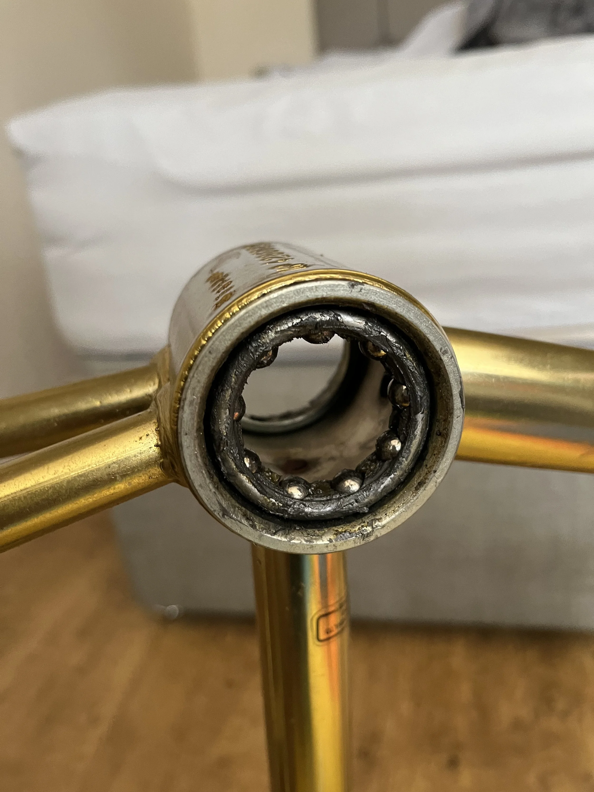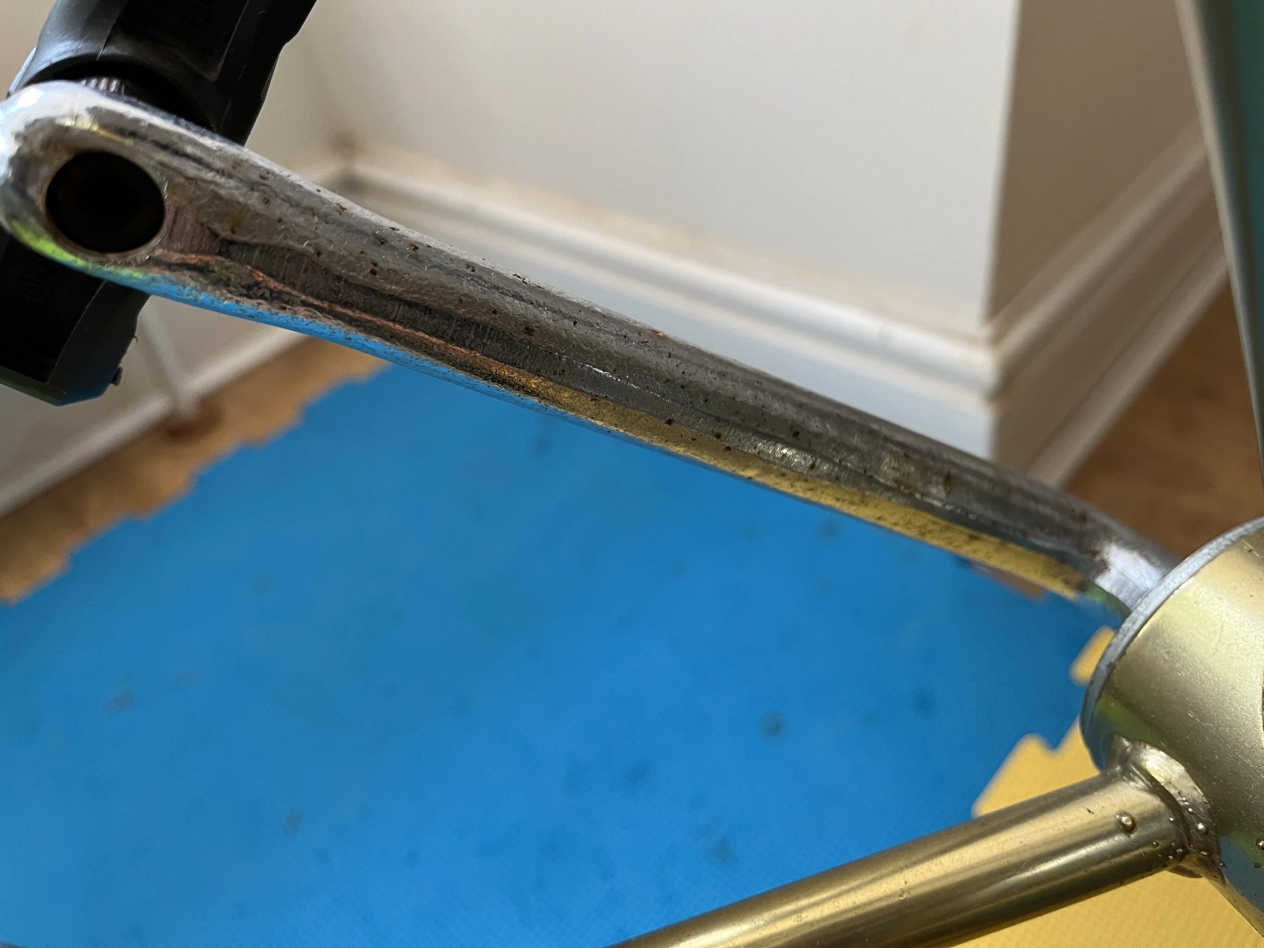 II started to carefully strip the bike down, being very cautious not to scratch any of the Super-chrome coating, as with age it can become very flaky. Lucky for me, there was a tiny bit of flaking on the handlebars only which was swiftly dealt with.